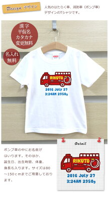Tシャツ 誕生日 プレゼント 出産祝い 名入れ 名前入り キッズ ベビー 半袖 手描き風デザイン 消防車 消防ポンプ車 放水車 男の子 服 誕生日プレゼント 百日祝い お七夜 春夏 メール便送料無料 ココロコ