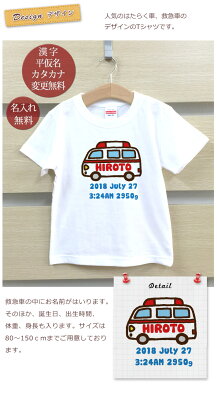 Tシャツ 誕生日 プレゼント 出産祝い 名入れ 名前入り キッズ ベビー 半袖 手描き風デザイン 救急車 男の子 女の子 服 誕生日プレゼント 百日祝い お七夜 春夏 メール便送料無料 ココロコ