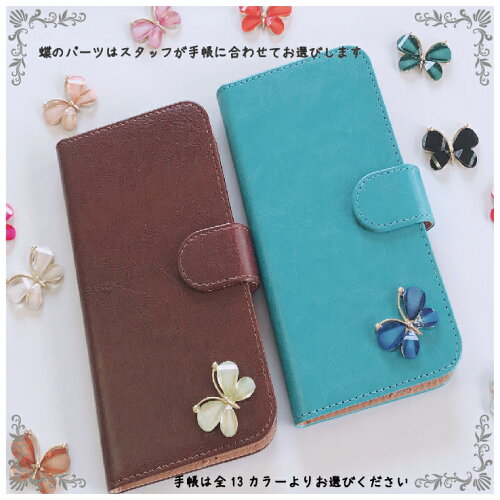 蝶々のパーツは当店スタッフお任せ!! 製品仕様 手帳カバー:高級PUレザー内側ハードケース:ポリカーボネート 内側カバーはポリカーボネート製を採用しています。