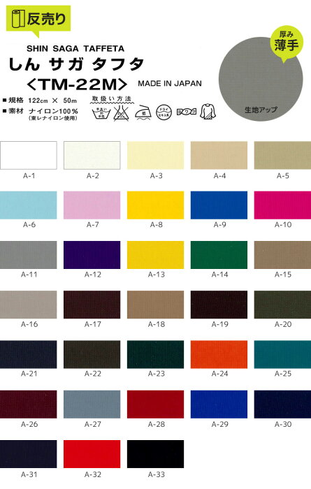 【生地 布生地】【撥水】しんサガタフタ 巾122cm N100% (50m/反) TM-22M*A-1/A-33__r-tm22m-