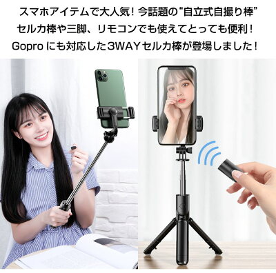 自撮り棒 セルカ棒 三脚付き iphone android スマホ gopro リモコン スマホホルダー 360度回転 動画 写真 撮影 bluetooth 遠隔操作 ワイヤレス コンパクト ワイヤレスセルカ棒 スマホ/GoPro用 三脚付 GP-WSB 送料無料 あす楽 即日出荷