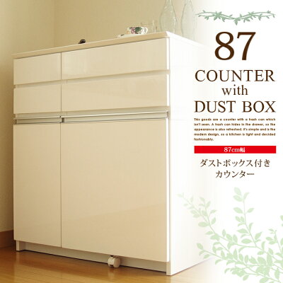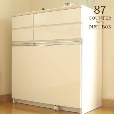 ゴミ箱 ダストボックス 国産 日本製 エナメル鏡面塗装 87幅センチ型ロータイプ ゴミ箱 ペールボックス付 完成品 キッチン収納 食器棚 すき間収納 ゴミ箱付 2分別 フタ付ゴミ箱 ホワイト 白